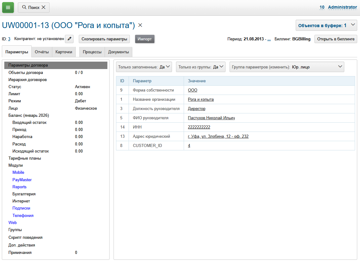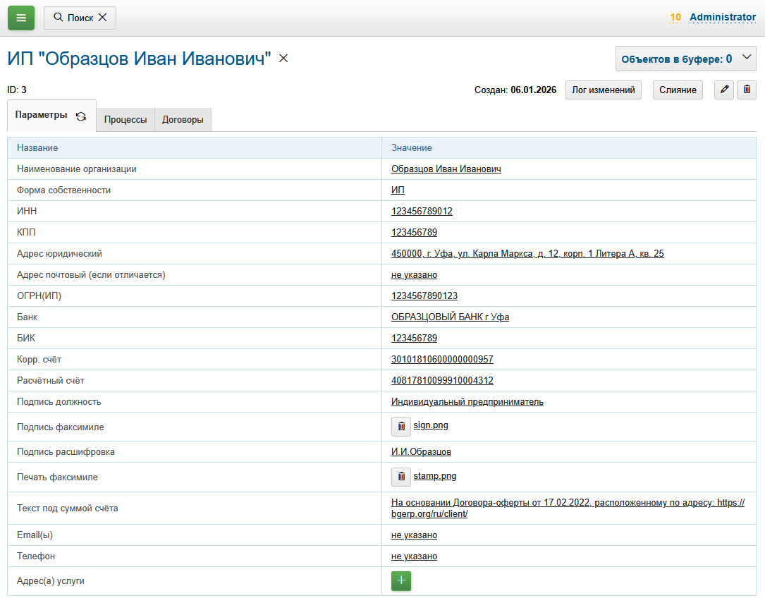 Набор параметров контрагента полностью настраиваемый. Возможен учёт контактных данных: электронной почты, телефонов, адресов. Реквизитов банковских и налоговых, ФИО, категорий клиентов.